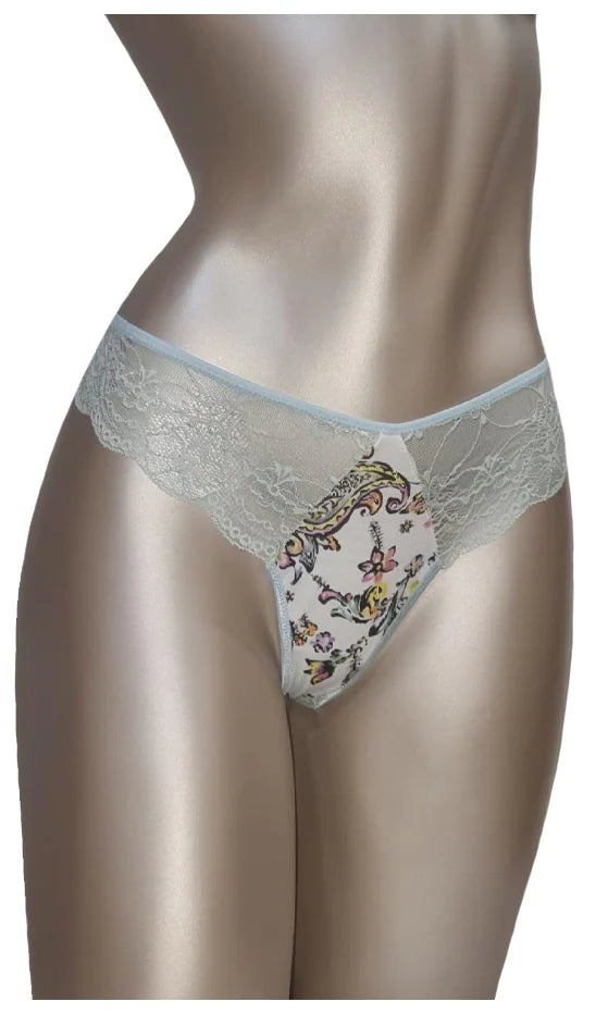 Indulge in luxury with our Brazilian panties made from a blend of soft cotton and delicate lace. The medium waist offers comfort and support while the light green lace and multicolored cotton add a touch of playfulness. Made in our European workshop using premium quality materials. As shown in the pictures.