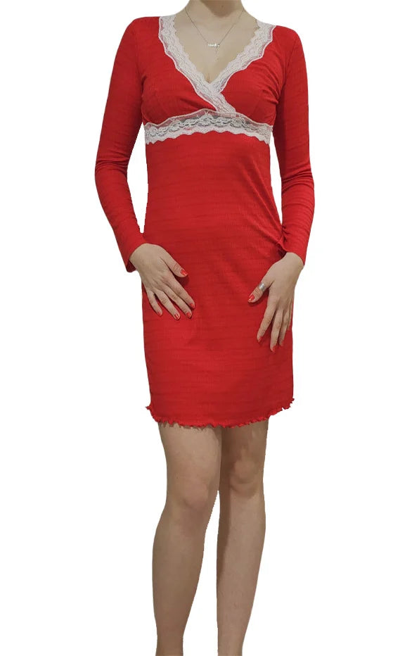 Enjoy a peaceful sleep with our high-quality cotton pyjama shirt. Its comfortable, elastic cotton and delicate lace accessory make for a perfect fit. In a vibrant red color, it is a must-have for your sleepwear collection. Made of soft, breathable cotton for ultimate comfort.